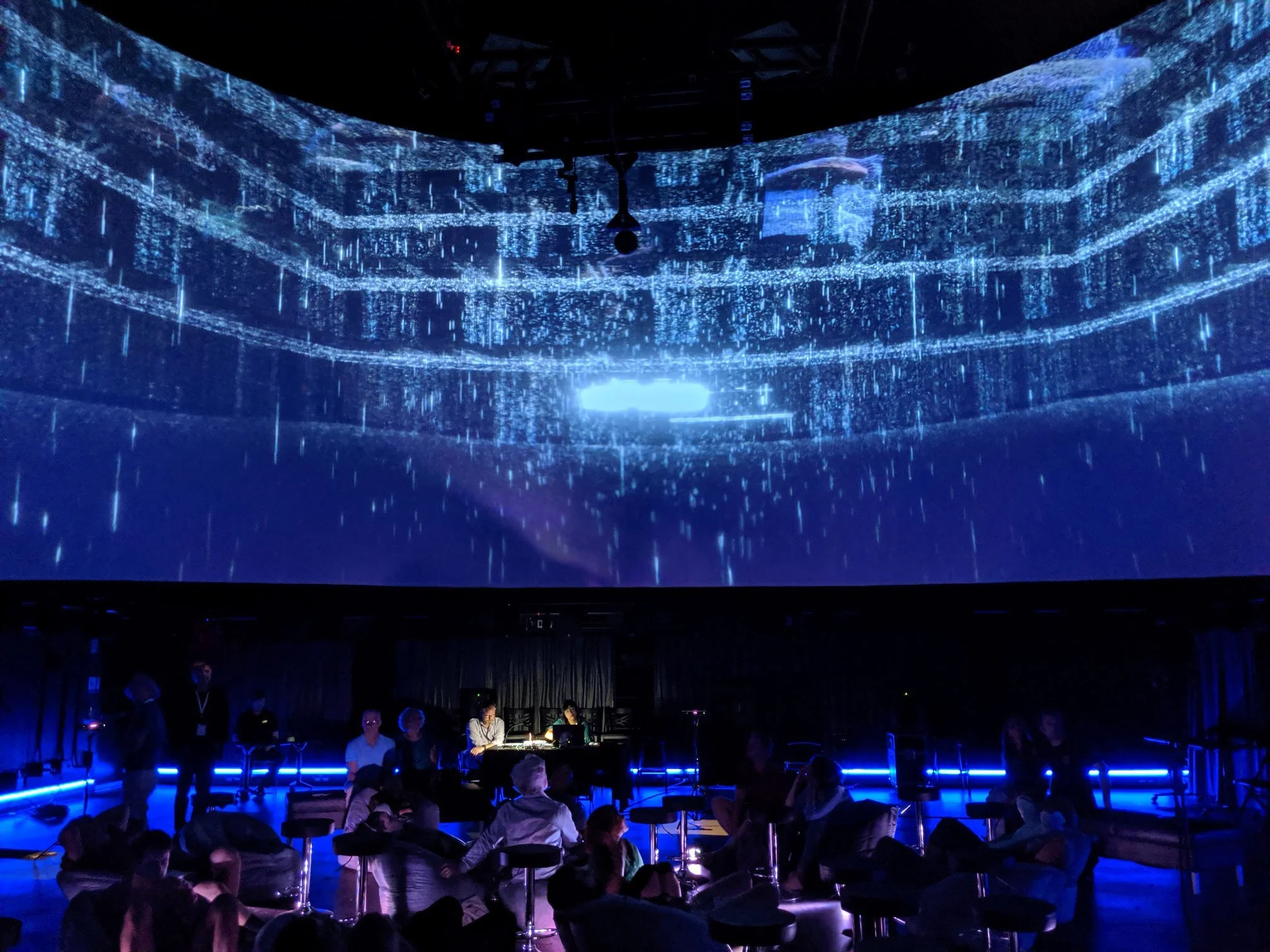 Performance VR inmersiva y generativa en pantalla de 360o y 240+ altavoces. Capturas volumétricas en tiempo real