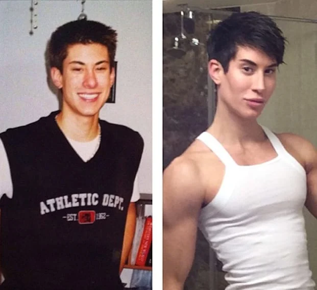 Justin Jedlica “el Ken humano” antes y después de las múltiples operaciones plásticas.